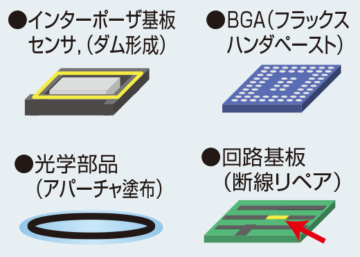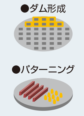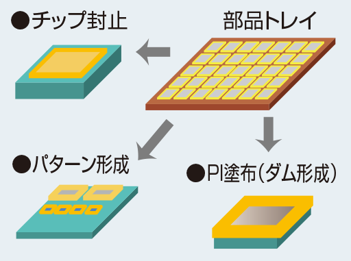 高粘度液剤を用いた 100µm以下の微細ダム形成 や、高精度な重ね塗り技術の開発に対応。