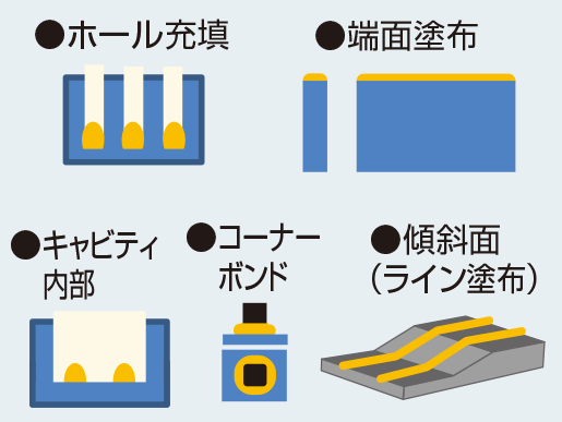• 糸引き・液玉・濡れ上がりを抑制した安定塗布