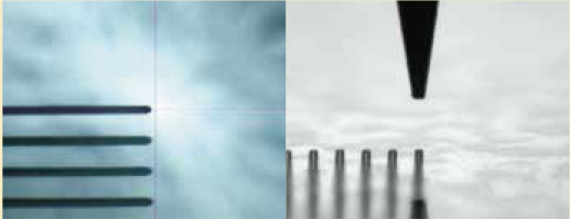 高精度塗布描画システム ESシリーズは、高粘度液剤による微細塗布・描画を研究開発、試作から量産まで対応するディスペンス装置です。Twin-airⓇ ディスペンサを搭載し、1000Pa・sの高粘度液剤でΦ50µmドット、50µm幅ラインの微量塗布を実現します。トップ&サイドビューによるリアルタイム観察、CADデータインポート、オートアライメントやレーザー変位計によるノズルギャップ制御により、各種ウエハ、基板、3Dワークへの高精細な塗布・パターニングを支援します。
