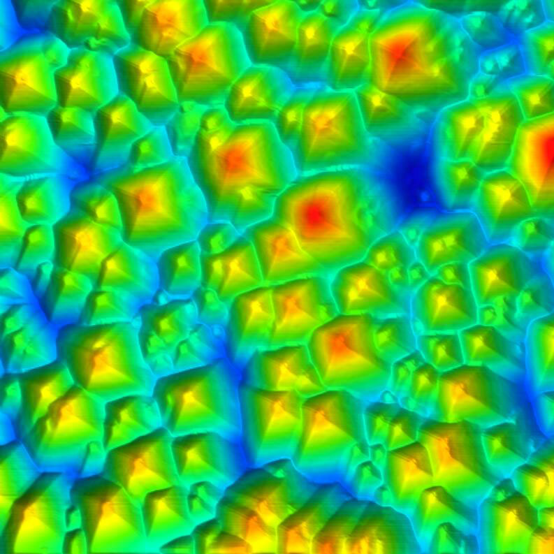 | Size:30 × 30 μm 出典:蘇州全雷光電 File Name:13-Monocrystalline silicon Pyramid 30x30um.jpg | Size:1 × 1 μm 出典:合肥理工大学 File Name:14-Cloud pea protein 1x1um.jpg | Size:2 × 2 μm 出典:蘇州ナノテクノロジー・ナノバイオニクス研究所(SINANO) File Name:15-CNT 2x2um.jpg |