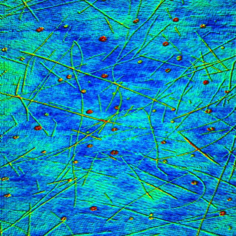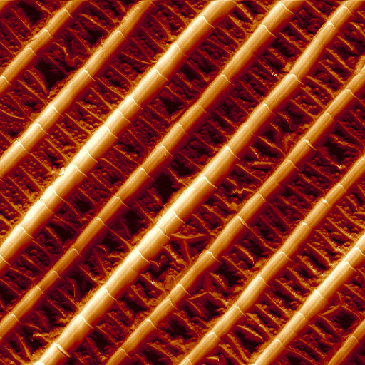 | Size:5 ×5 μm 出典:Wuhu Changxin Technology File Name:10-ITO film 5x5um.jpg | Size:2 ×2 μm 出典:合肥理工大学 File Name:11-DNA 2x2um.jpg | Size:2 × 2 μm 出典:蘇州全雷光電 File Name:12-Nano grating 2x2um.jpg |