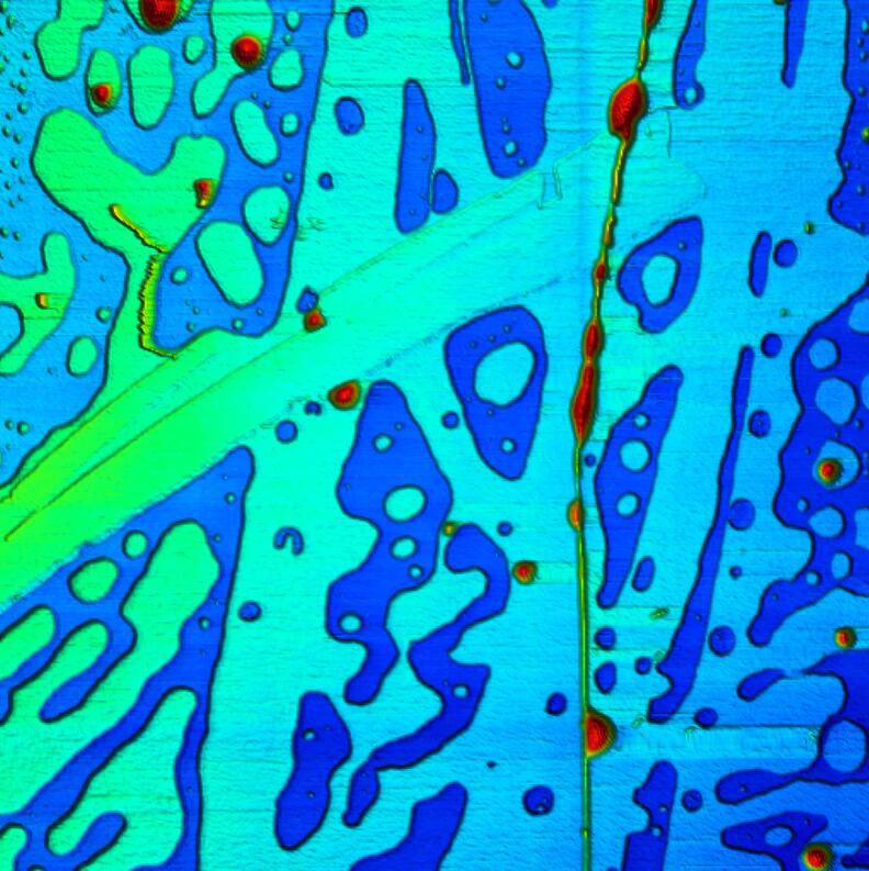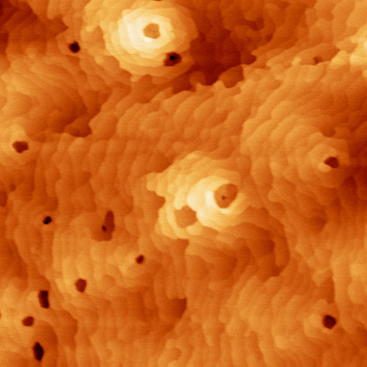 | Size:3×3μm File Name:07-GaN substrate 3x 3um.bmp | Size:2 × 2 μm 出典:南京大学有機半導体蒸着膜 File Name:08-STO film 2x2um.jpg | Size:10 × 10 μm 出典:蘇州ナノテクノロジー・ナノバイオニクス研究所(SINANO) File Name:09-Organic semiconductor vapor film 10x10um.jpg |