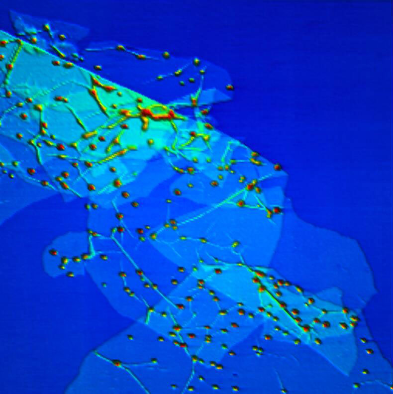 | Size:12 × 12 μm 出典:天津工科大学 File Name:19-Hollow fiber membrane 12x12um.jpg | Size:7 × 7μm 出典:Henan Bowei Nanoscience File Name:20-Ferric oxide 7x7um.jpg | Size:10 × 10 μm 出典:北京航空航天大学 File Name:21-Graphene 10x10um.jpg |