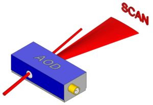 IsometAOディフレクタ(音響光学ディフレクタ)レーザービームスキャン(ランダム位置、ラインスキャン、連続スポットディフレクション)に最適なRF周波数制御ディフレクタ。高効率。スキャンレート 最高 250 kHz