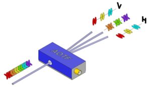 IsometAOチューナブルフィルタ(音響光学可変フィルタ)音響光学デバイスによる電気制御スペクトルバンドフィルタ 。可視~赤外・中赤外までの光を厳密にフィルタリング