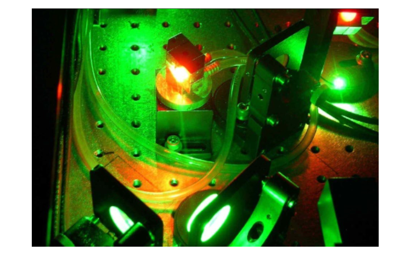 Ti:Sapphire (チタンサファイア)レーザーは650~1100nmの範囲で赤色や近赤外光を発光する波長可変レーザーです。レーザーは、超短パルスを発生させることができるため、主に科学研究に使用されています。チタンサファイア(Ti:Sapphire) レーザーは、通常、514~532nmの波長を持つ他のレーザーにより励起されます。アルゴンイオンレーザーや周波数を倍増したNd:YAG、Nd:YLF、Nd:YVOの媒体によるレーザーが使用されます。